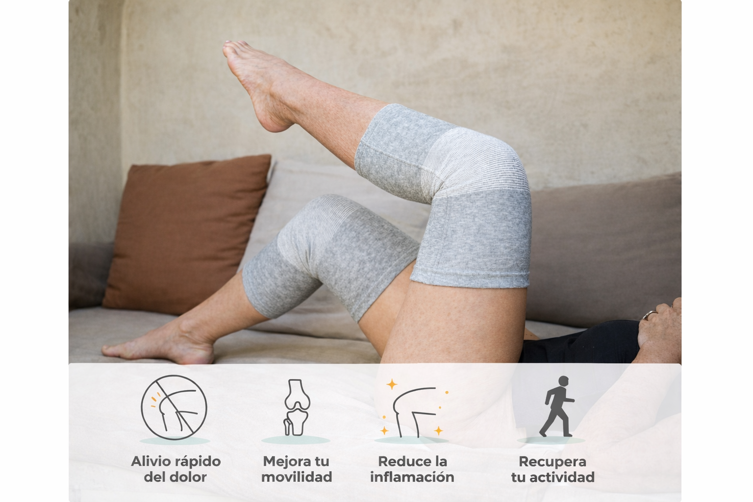 Tengo 63 años y el dolor de rodilla ya me impedía caminar con normalidad. Desde que uso esta rodillera siento la rodilla mucho más estable y el dolor ha disminuido mucho.